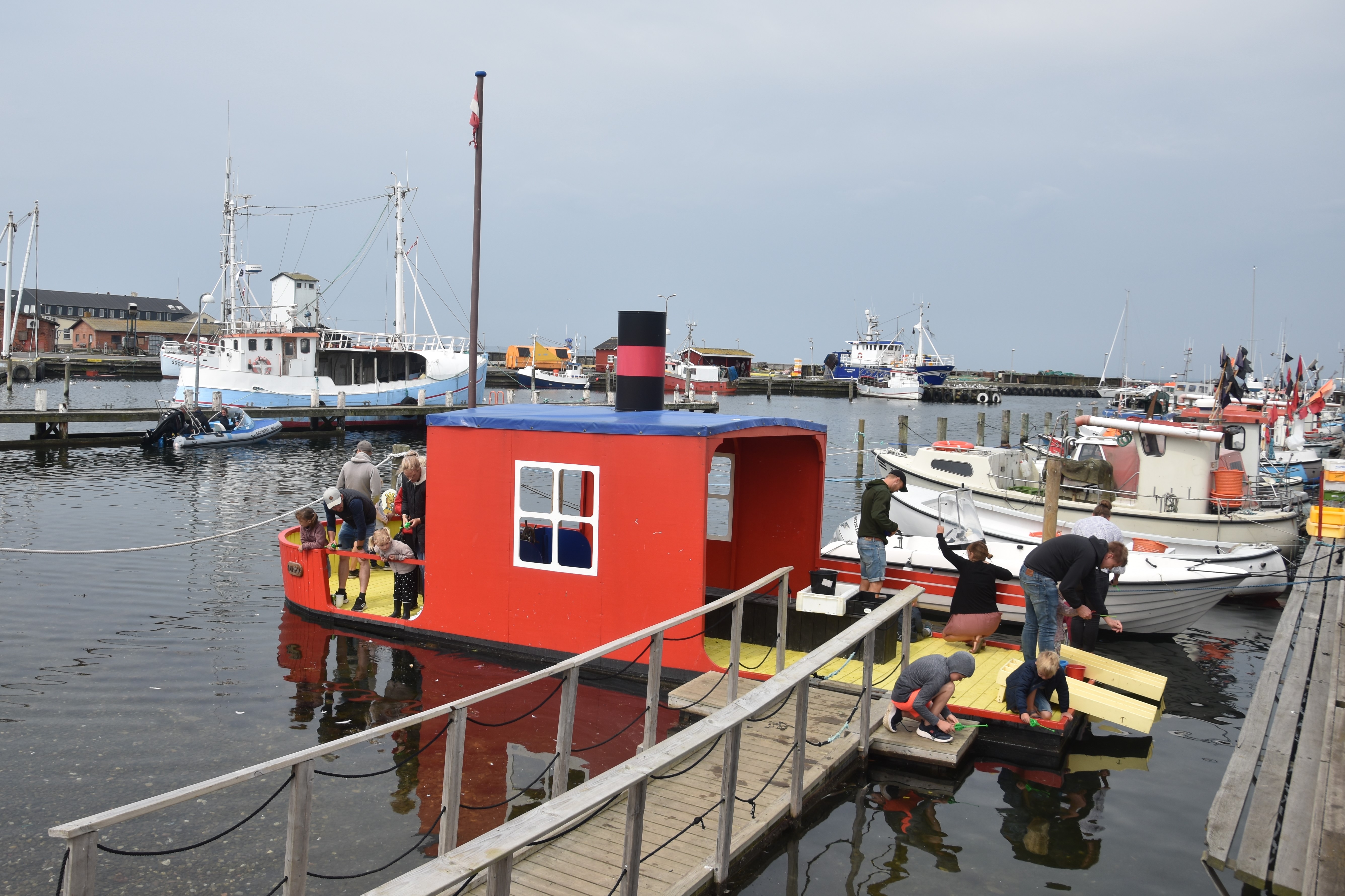 Next to this little house is a boat that is actually docked at the harbor and on the water. This is Rasmus´ boat, which you can go on and, at least when we were there, fish for crabs. There were many children there that day fishing for crabs, so it was quite entertaining to watch.