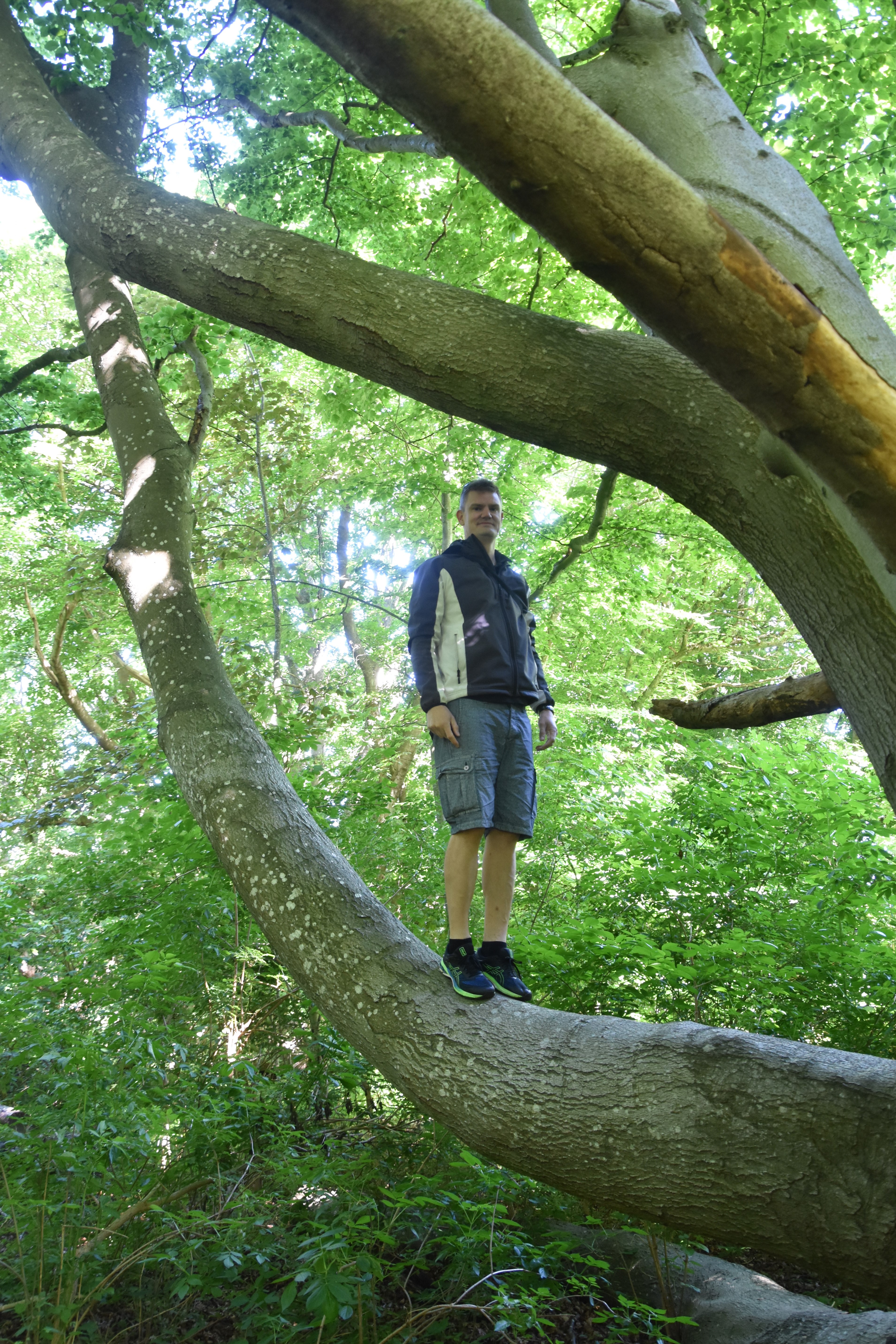 Not only were we surprised to find many interesting artistic pieces made from trees and other natural materials, but we also loved the many different types of trees that the forest had. Trees might not seem that interesting to some people, but these were “climbing trees”. With all the tall, birch trees that adorn our streets and neighborhoods in Denmark, we were so excited to see some trees that we could actually climb!