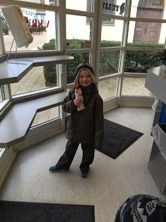 Then, I had the boys carry their coats out of the locker room, since there wasn’t much room to put them on. I was a bit flustered and annoyed anyway. The mother to the baby said, “have a nice day” as I mumbled my dissatisfaction about the crazy country of Denmark and their 1940s locker room. Haha!