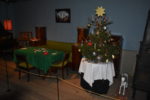 This is the area called the Eilschou Almshouses, where the vicar’s widow has decorated her modest home for Christmas. The small tree sits on top of a vanity in a flower pot, and it is covered in paper flowers. A long, paper ladder extents from the top of the tree and continues past the bottom of the pot. Small angels can be seen climbing up representing the journey from earth to Heaven along Jacob’s ladder. This little addition to the tree is something I have never seen before in Denmark or anywhere else. It is great to learn about not only the history of Denmark on this trip to Den Gamle By, but also to learn about the history of a Danish Christmas.Â