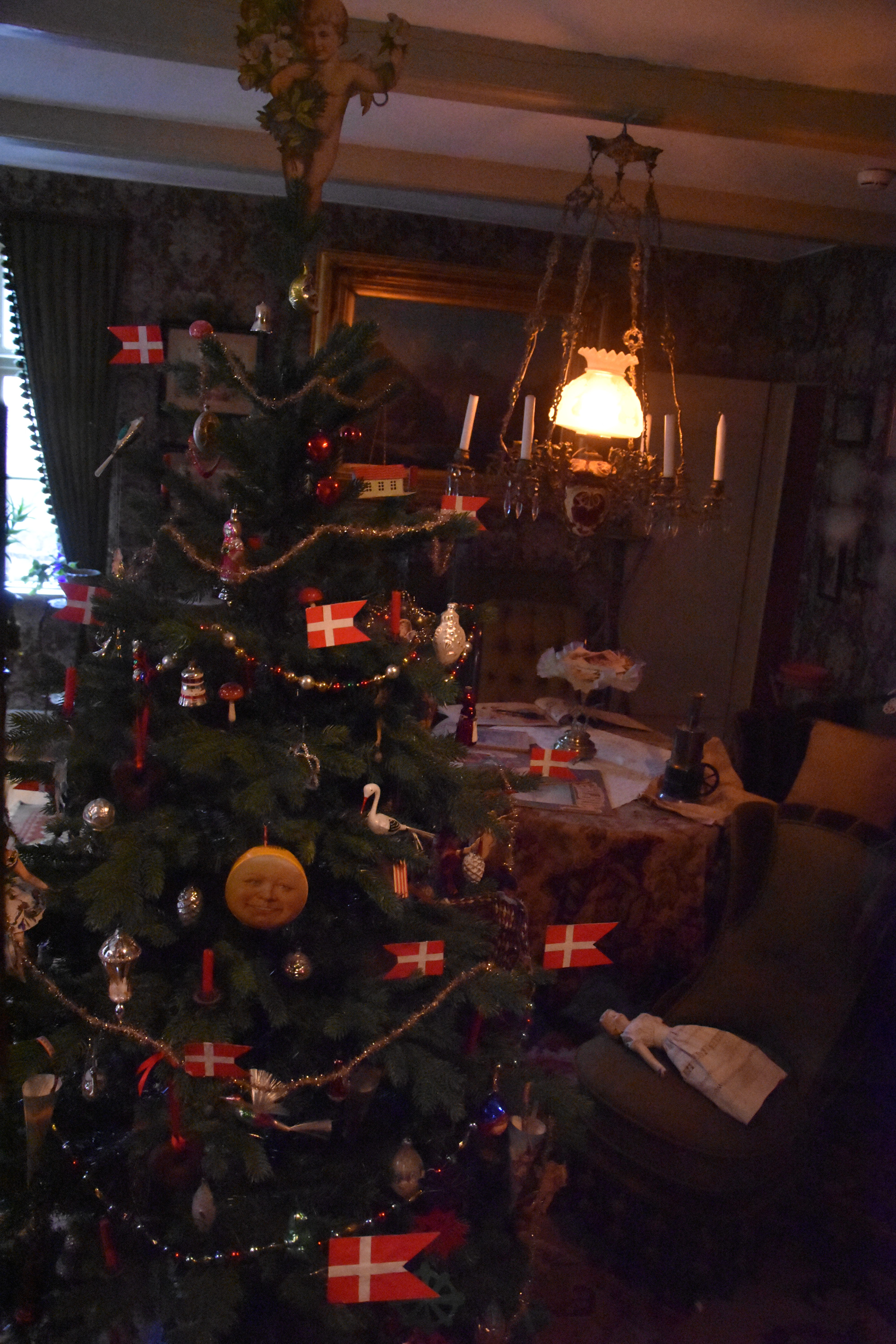 The first Christmas tree that we found was from 1809, and it was much like the one we saw just as we entered the museum. The small size gave the impression that trees weren’t very large when they were introduced to Denmark in the early 1800s, but the one found in the mayor’s house was decorated in a slightly different way, perhaps showing the difference in the household income.