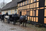 Horse-drawn Carriage down the cobblestoned streets of Den Gamle By in Denmark