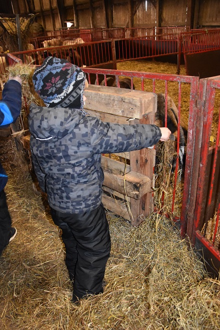 We thought it would be best to see the animals first. It was a bit on the cold side that Easter, so the animals were in the barn. Once inside, we took a peek at them and even were able to feed them some hay. My boys really enjoyed this. The animals were very different from each other, being different breeds of sheep and goats. We particularly liked the ones with curly horns and of course the babies!