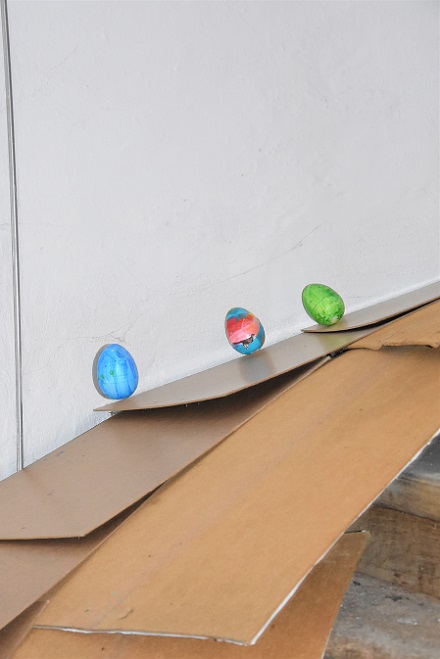 “George” supplied the Styrofoam eggs for the kids, and he was also the one to roll them down some wooden boards that were laid out in the winding steps. The kids just needed to count down in Danish and remember the color of their egg. All’s well that ends well, since all the kids got to have a chocolate no matter which egg came down first.