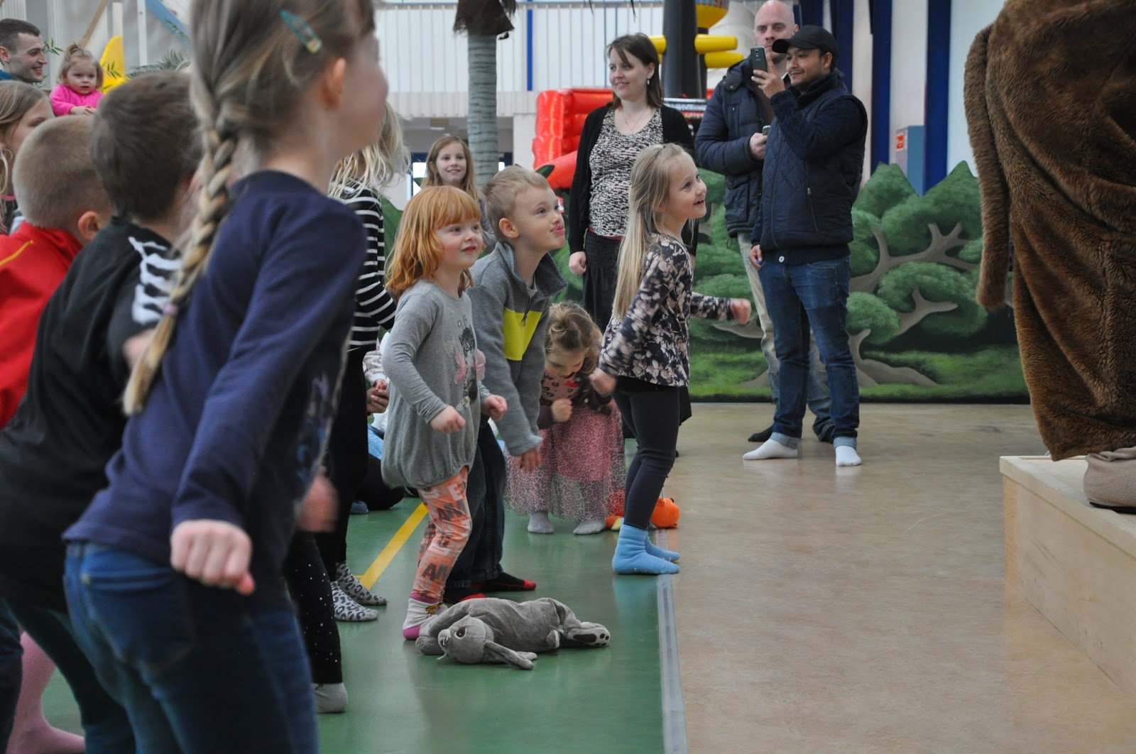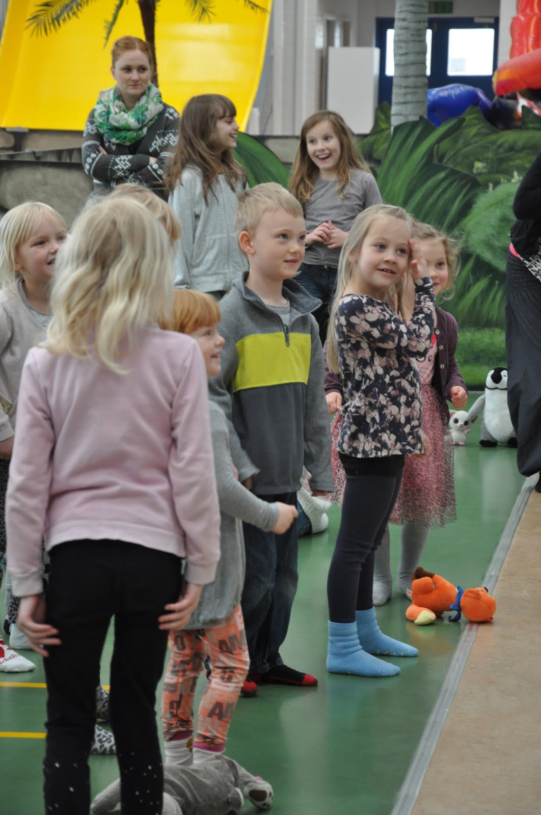 On Sunday, we really had done most of what Jesperhus had to offer. The pirate show the night before really wore us out, so we all slept in on Sunday. After eating breakfast, we headed to the indoor activity center, yet again. We wanted to go to the Zik and Zak Gymnastik Party, which took place at 11am. We were early, so the boys played on the slides and toys. It rained all day the day before, so I encouraged my kids to avoid the outdoor playground until after lunch when they could get their rain clothes on. It wasn’t raining then, but the rain clothes would protect them from the wet sand. They both had runny noses, and I didn’t want them to get worse by being cold and wet. I have to say that the indoor activity center was cold on the feet. If we ever go back there in April, I would want to bring slippers and/or thick socks for this place.