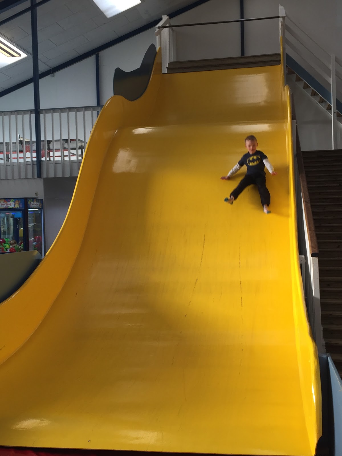 After we woke, we packed the pirate clothes and drove to the indoor activity center that we first tried out on the first day of being there. We had some time before the pirate show, so we decided to spend it playing. This was when my son talked me in to going down the slides. There were two, yellow slides in this building. I am not a big fan of speed or heights, so the idea of going down one of these slides was really nothing I enjoyed. I thought I was a big enough girl to do the smaller of the two, and I realized quickly that it was still fast. My heart was racing after that one trip with my little guy on my lap. I know that I’m being a baby. There were tons of small children on both slides, laughing and speeding down the slides without a care in the world. I was terrified! My bigger son asked me to go down the big slide with him, and I told him that I didn’t think it was going to happen. I told him that I would either faint, puke or pee my pants. He didn’t seem to be fazed at all by these images. He dismissed them almost immediately. I walked up the many steps to the top of the big slide with him, and I even went as far as to sit down at the beginning of the slide, but that was all I could muster. I told him that I didn’t think I could do this. Actually, I said, “I don’t want to do this.” He said, “come on, mommy,” which made me feel a bit annoyed at myself. I wanted to play with him, but I was so stinkin’ terrified of this slide. I know and knew then that I would be fine, but I just couldn’t do it. I said, “I just can’t” and got up. He ended up going down the slide without me, crying the whole way. I don’t really know what made him cry. I will never fully understand the emotions of small children, but he was very upset by this. How can you explain to you 6 year old that you are so afraid of something that you can’t do it. Then tell him that the “something” specifically is a slide. I am sure that he found it hard to believe and somehow internalized my abstinence for being something against him. I know that I felt horrible. I met him on the stairs as I was walking down and he was walking back up. Still crying, he said, “come on, mommy. Try something new!” Darn it all! That kid was using my own words against me. How can I tell my kids to try new foods and activities if I don’t. I was a fraud! I was bound to go down that darn slide!! I still didn’t want to and was afraid, but I had to do it to show my son that I wasn’t completely full of “sh*#”. I gave myself a pep talk as I walked up the stairs holding his hand, and then, I went down the slide. I was much better about it, than I had thought. I mentioned to my son that I would probably scream so loudly that I would scare people, but I didn’t. I ended up going down that slide 5 more times. Crazy!! The things you do in life for your kids!! I guess I should say, the things your kids help you overcome. I wouldn’t say that I’m ready for any slide now, but baby steps. I thanked my son for being so supportive of me. I hope he understood just how much he did for me in that instance and how much I went against everything my mind and body was telling me just to prove to him that I loved him!
