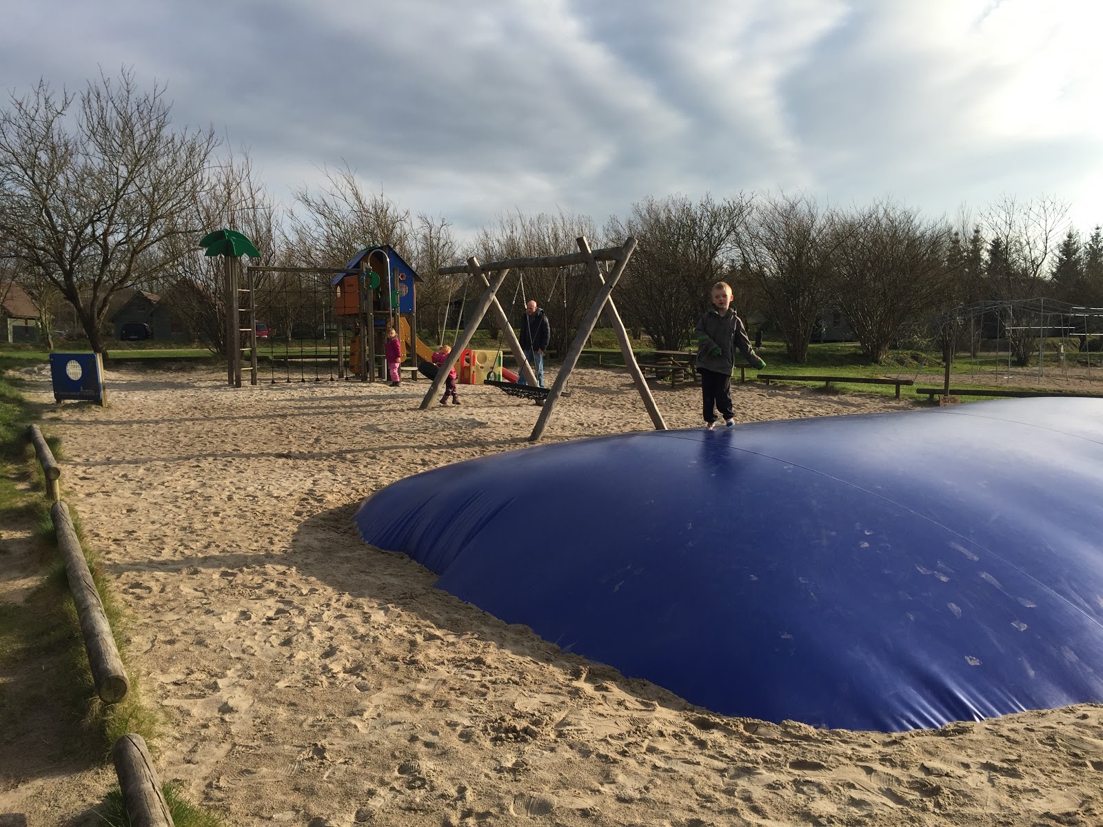 If you chose a cabin, you could get a themed cabin, a play cabin or a basic cabin. We went with the basic cabin, since there were more available. There also appeared to be bigger cabins off in the distance that could accommodate larger groups of people, as well as many blue, tents for rent. Â Then, there were the caravans (campers)! There had to have been enough space for at least 300 campers. I was so surprised to see so many campers so early in the camping season. Apparently, camping starts early in Denmark. The neat thing about campers in Europe is that they have these cool tents that can be attached to the side of the camper with the door. It adds to the living space, but I didn’t see anyone using them at this time of year.