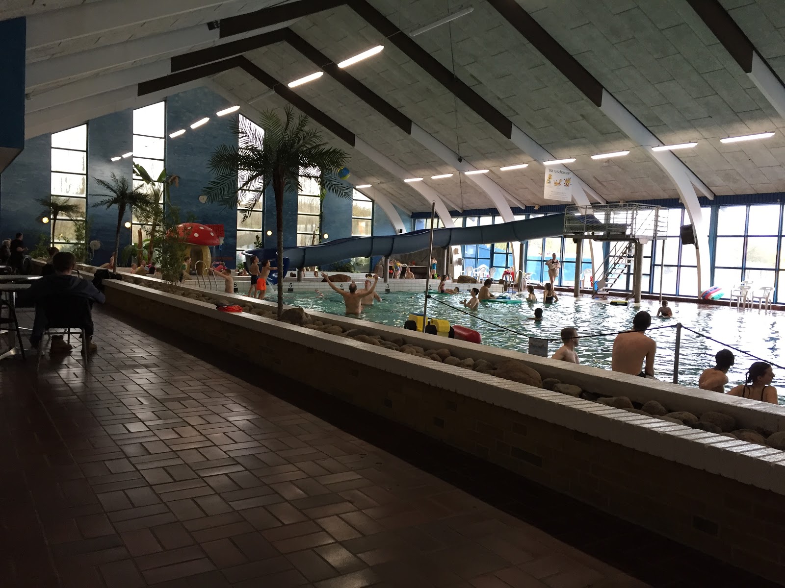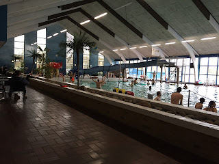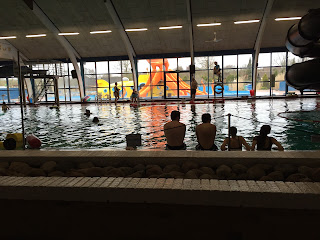 On Saturday, we got up and had breakfast in the cabin. It was raining, so we decided to take the car to the main building to go in the indoor swimming hall. Since I had already had a swimming pool experience in Denmark, I was ready for the locker room. Luckily though, my husband was with me and took the boys with him to the men’s locker room. Before anyone entered the locker rooms, we had to take off our shoes and put them on racks outside the locker rooms. I, of course, don’t have pictures of the locker room (not by my choice), but I can say that it was standard. However, the mini lockers were for rent. I wasn’t expecting to take 5 Danish Kroner with me (about 75 cents) to house my coat and clothes, so I would have to leave my stuff inside unlocked until I met with my husband on the other side. I was one of the first people in there, so I quickly dressed in my suit and went out to wait for money from my husband. Then, I went back inside and showered. By this time, there was a full locker room with both dressed and undressed woman showering. I made my best attempt to shower by using soap from the dispenser, but I left my suit on.