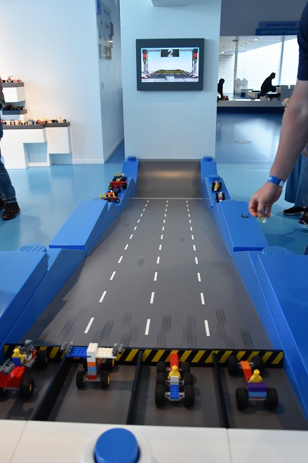 The Blue Zone doesn’t forget the Duplo fans. Instead of building cars to race, there is a fun LEGO train area where smaller children can play with LEGO trains.