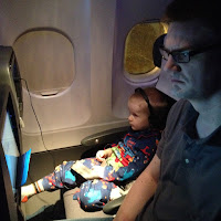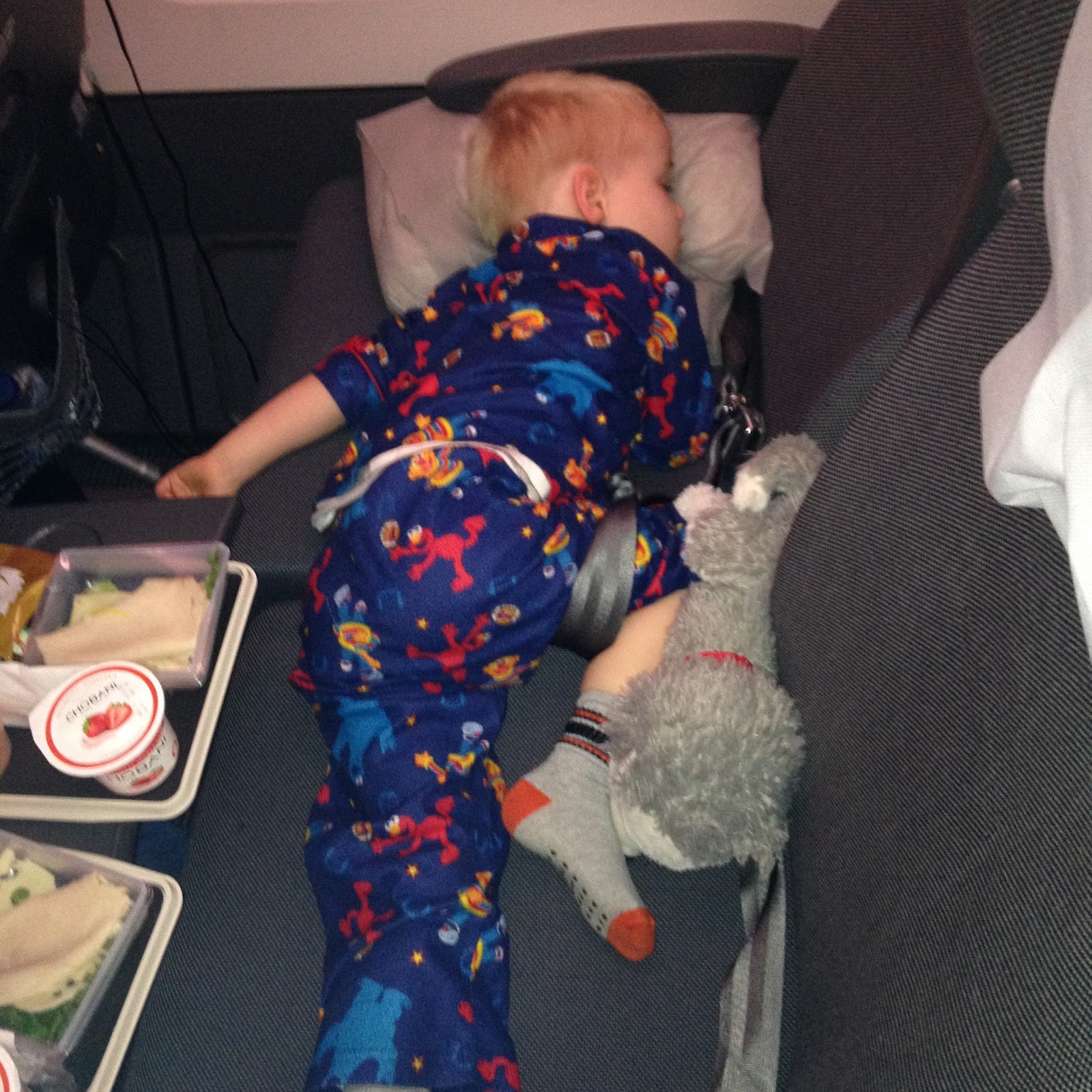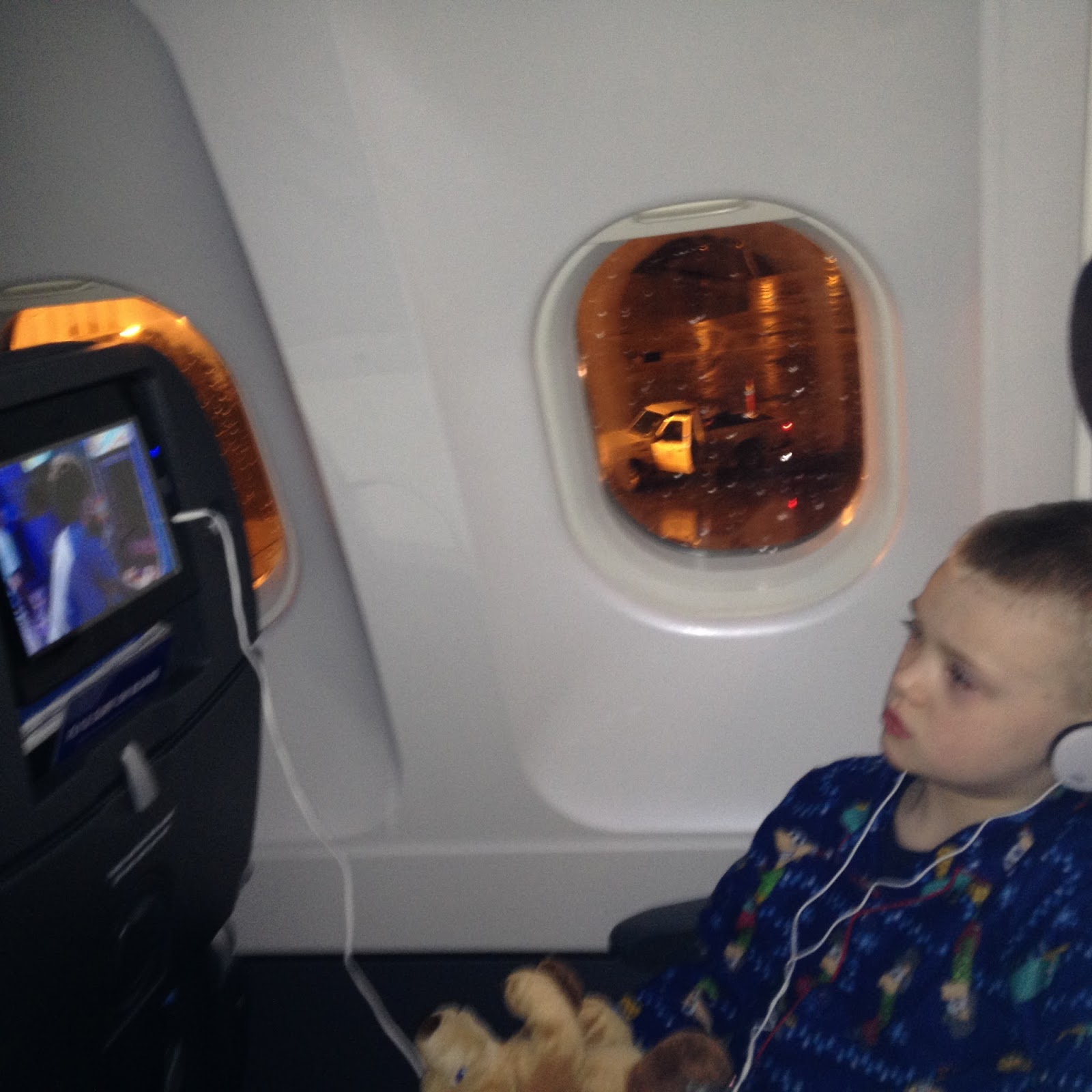 window at take off, which we did, and then the most amazing thing happened! They passed out almost immediately! 🙂 They normally would wait until after getting a drink and supper, but they were out for the count and didn’t wake until a half an hour before landing. The flight was smooth. The airplane was extremely clean and new. The TVs were like Ipads, and each were for personal use, meaning that you could start and STOP the movies when you wanted. This was luxury. My husband and I both had a whole row to ourselves to sleep, which I actually did. I slept on a plane. It might have only been about 4 hours, but I slept! I remember smiling most of the time on the plane, feeling fantastic. No stress. I could get used to traveling like this. Christmas in February anyone?