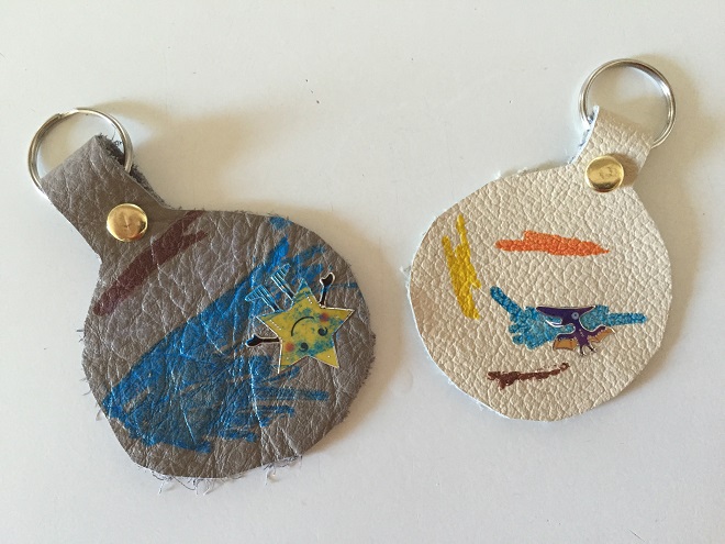 Leather keychain for Easter (made by a 3 and 6 year old)