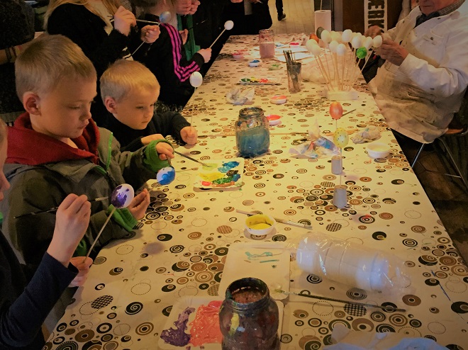 Decorating Styrofoam Easter Eggs at Håndværksmuseet