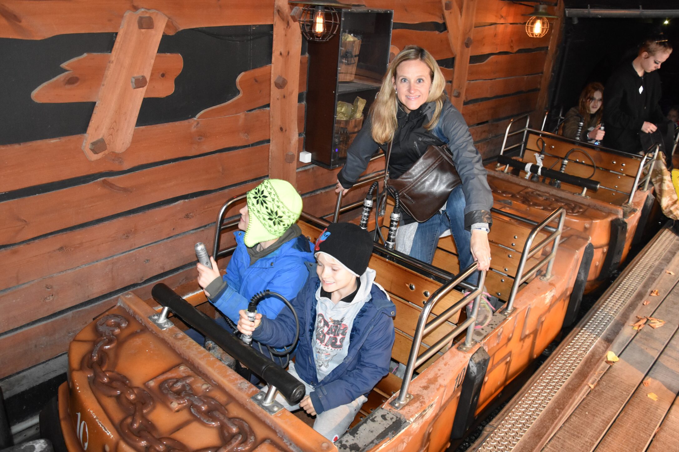 Our first ride was at the Mine. I have to say that my youngest son was very unsure of this ride, since it was all inside a building and he couldn’t see what it was like. However, he and the rest of us soon discovered that this was one of our most favorite rides in the entire park.