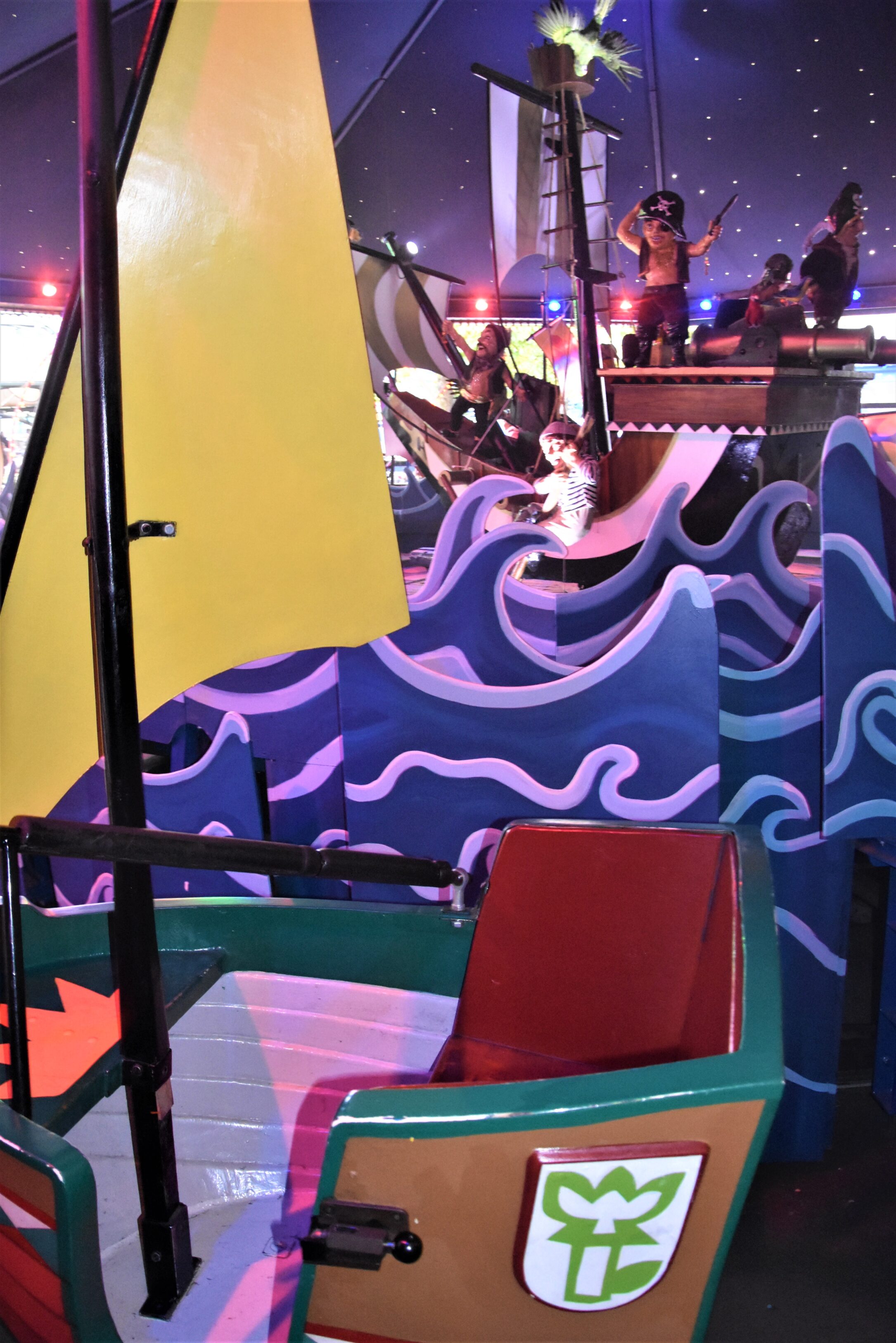 At first, it looked very sweet with the pirate in the middle of the ride and beautifully painted boats for two people in a lovely blue ocean. Since the look of it seemed to be more for children, I thought that it would be a very easy ride.