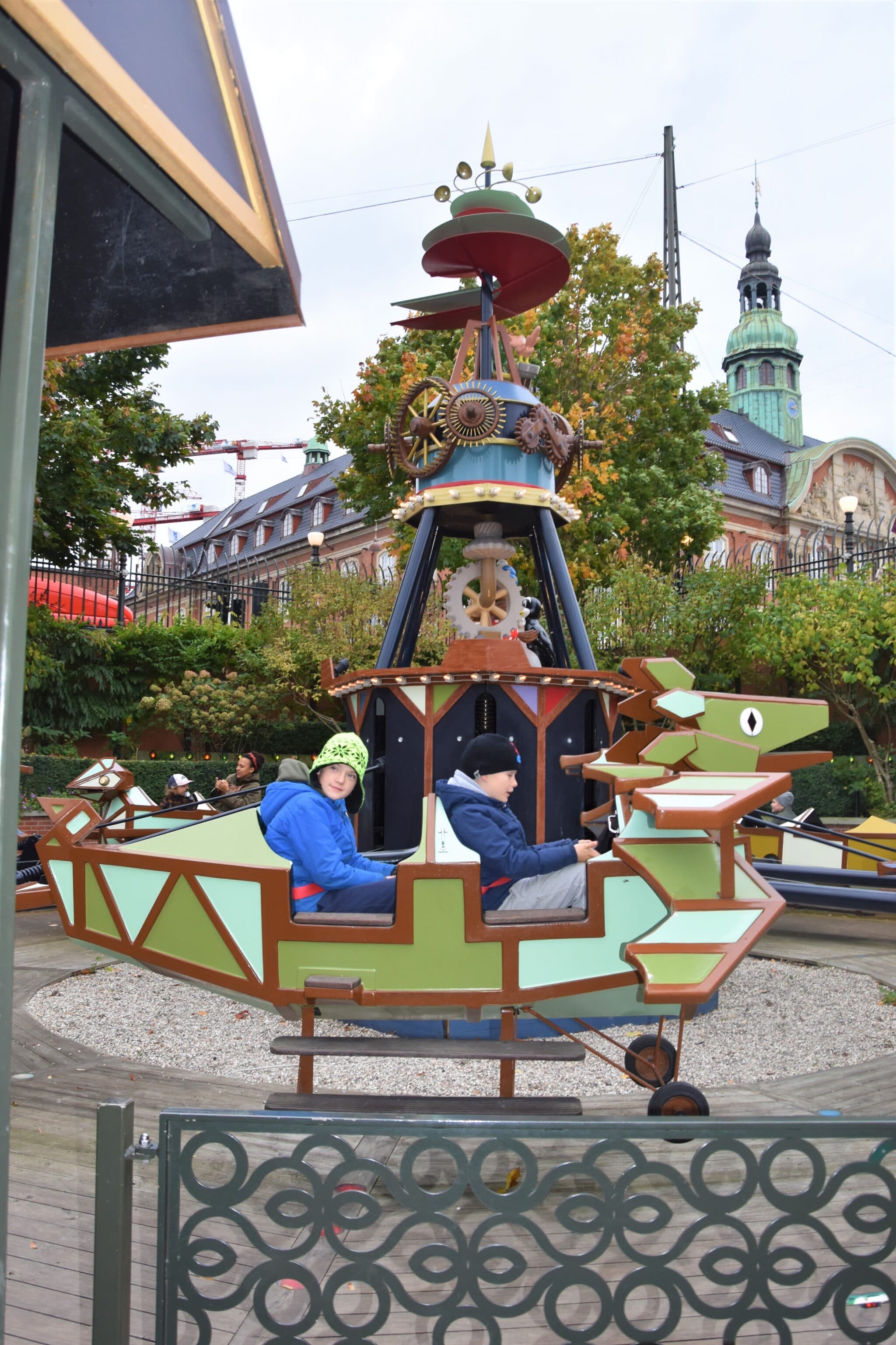 My boys thought that they would try Den lille Drage instead, which was somewhat of an airplane ride. It went around in a circle and they had the option of using the lever to bring them up or down during the ride.