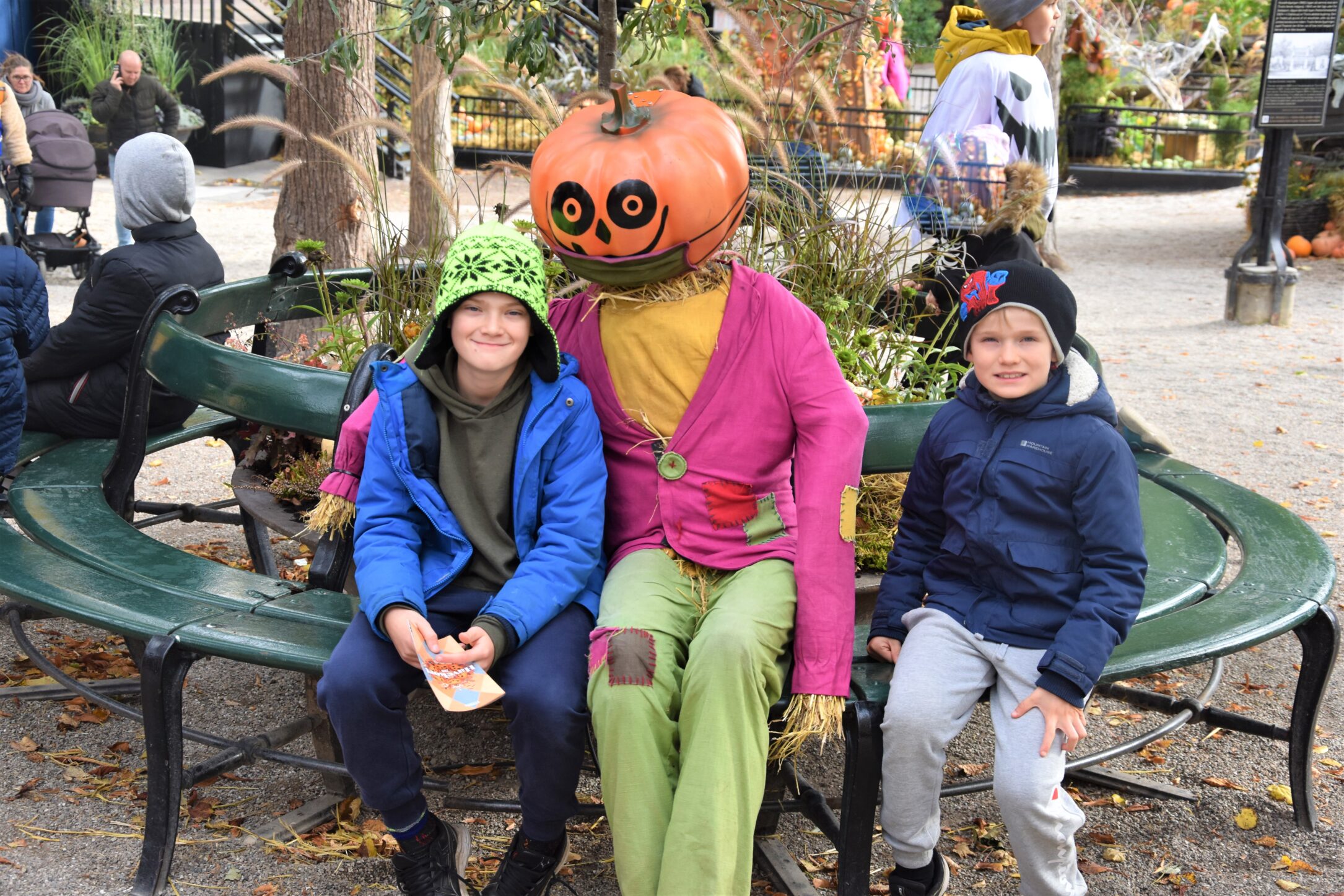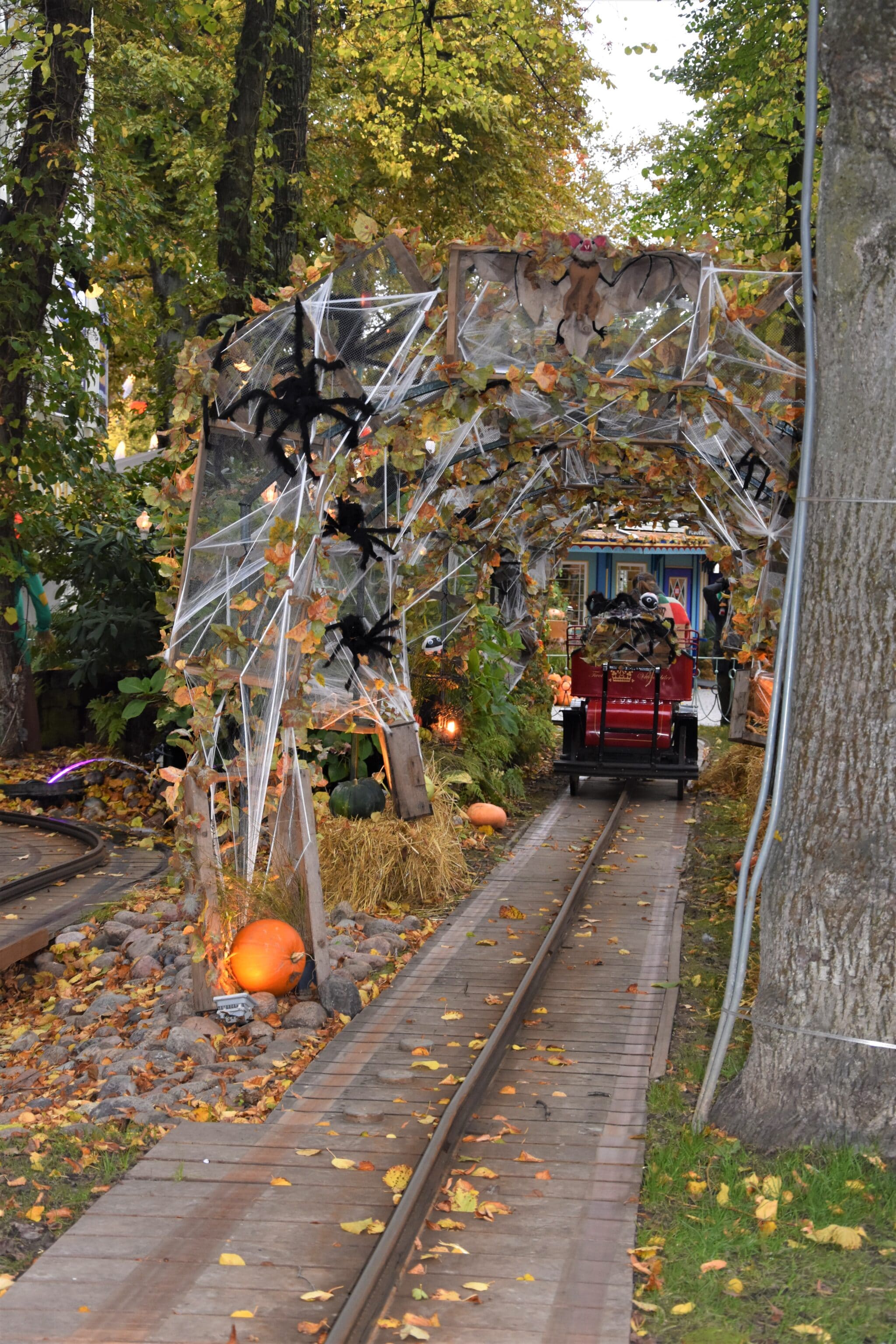 If all of the Halloween decorations at the entrance didn’t impress us enough, we were more than impressed by all the spooky displays that they had inside the park. There were pumpkins of all shapes and sizes in every possible place you could imagine: on stages, near buildings, hanging over walkways and even in display areas in front of places like the Pantomime Theater.