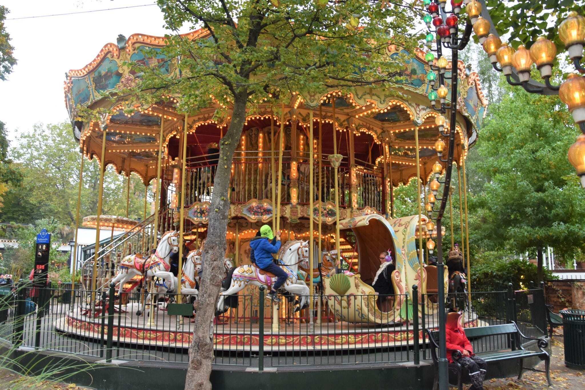 I don’t know about you, but I love carousels. The older the carousel, the better, and when we saw the double-decker carousel at Tivoli Gardens in Copenhangen, we were very impressed. The boys decided to go for the horses on their ride of Musikkarrusellen, though there were many other options. There is nothing wrong with sticking to traditions though. They had a great time!