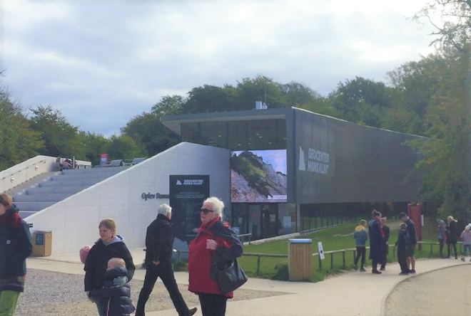When you get close to Møns Klint, you may notice that you drive through a large, forested area. This is called Klinteskoven. There are many parking places throughout the forest for those looking to try all of the many paths for cycling and walking. However, when my family and I visited Møns Klint, we parked at the parking lot closest to the GeoCenter. This is the best parking area to use if you want to see the GeoCenter and the main views of the cliffs.