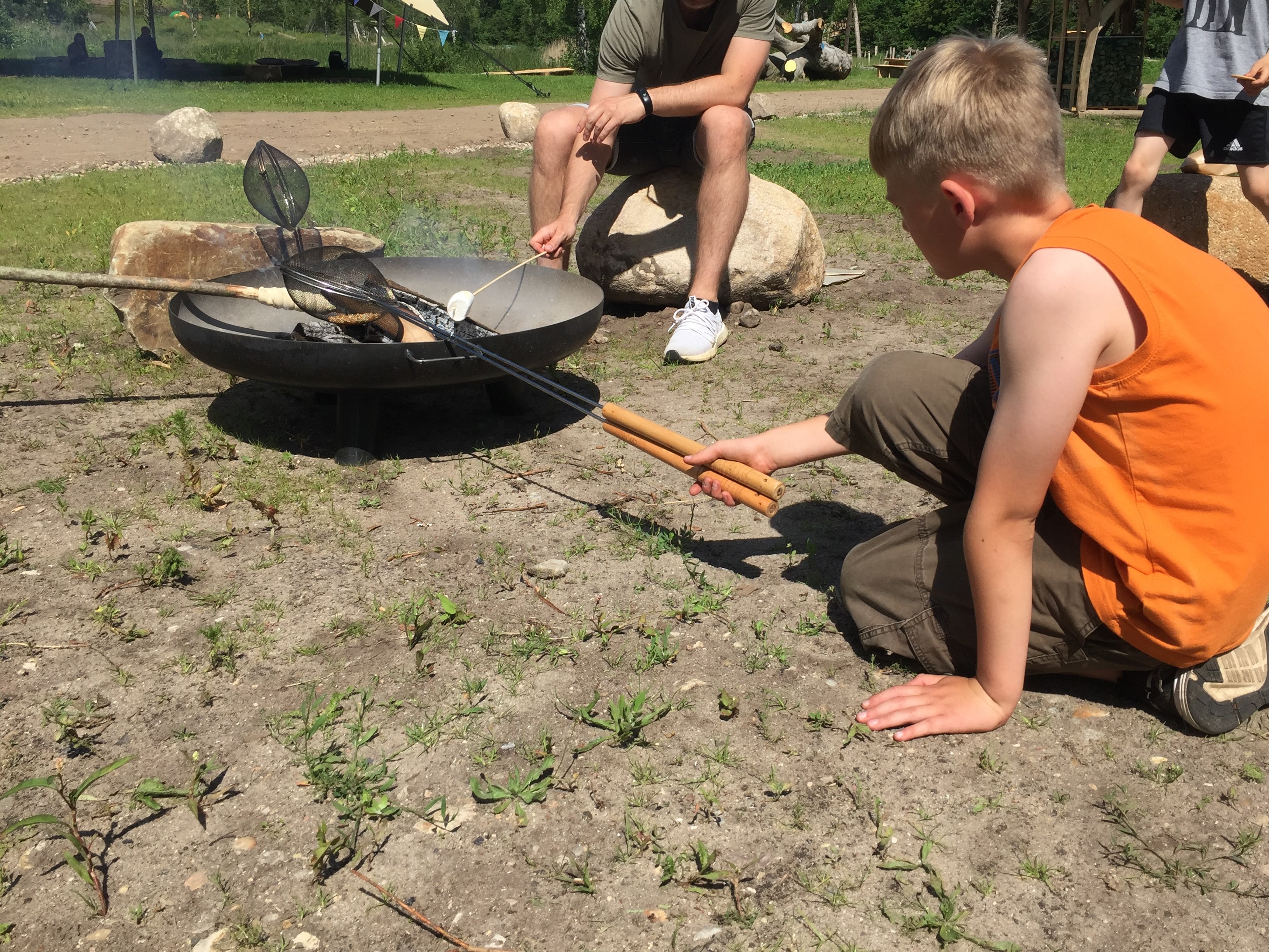 WOW PARK provided campfire cages that you could use to pop the corn, so we got to work making our own popcorn. I noticed that there were other families roasting snobrød, bread dough that is wrapped around a long stick, and some others were making S’MORES with food kits that they had bought in the store. That would have to be something we could try on our next visit!