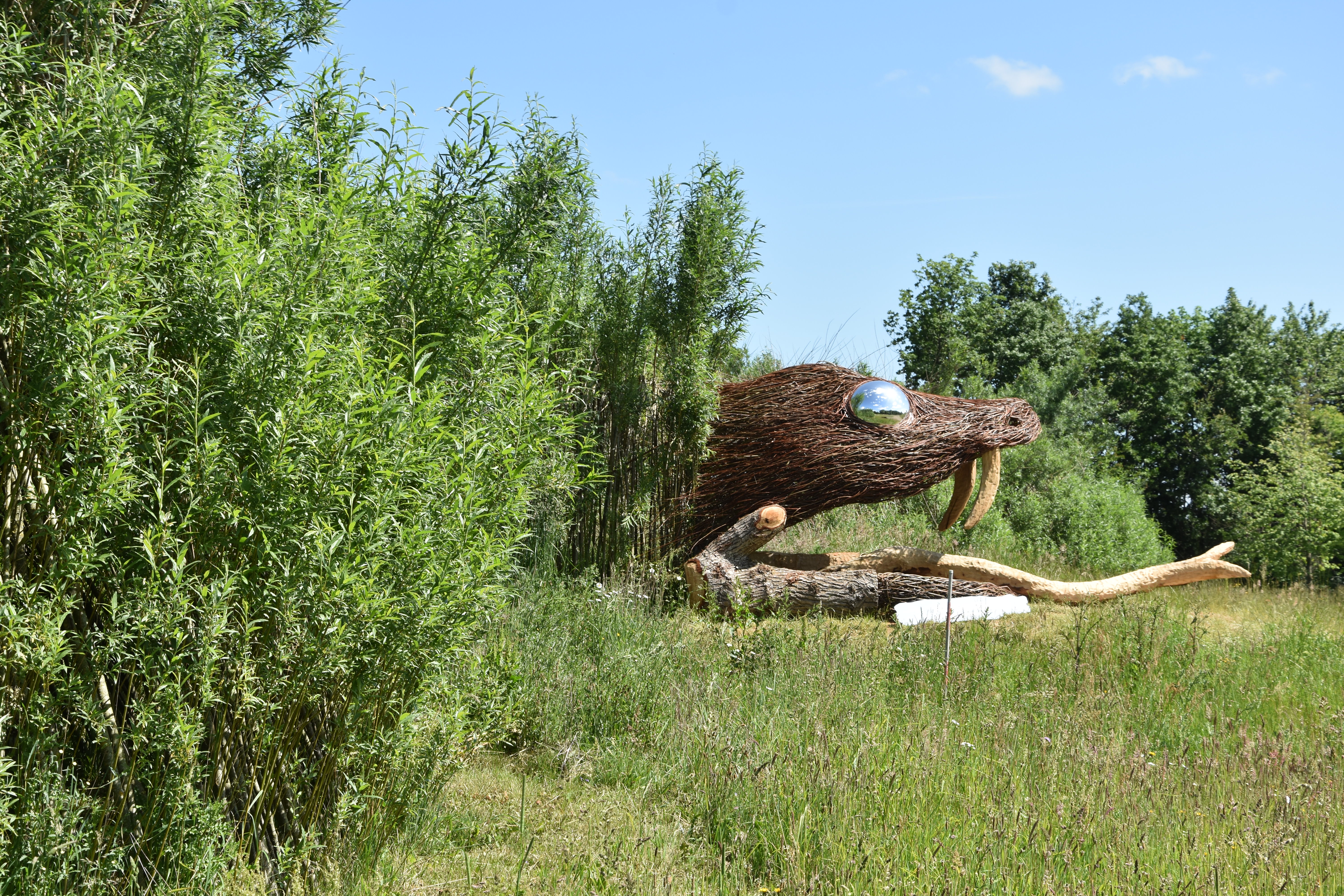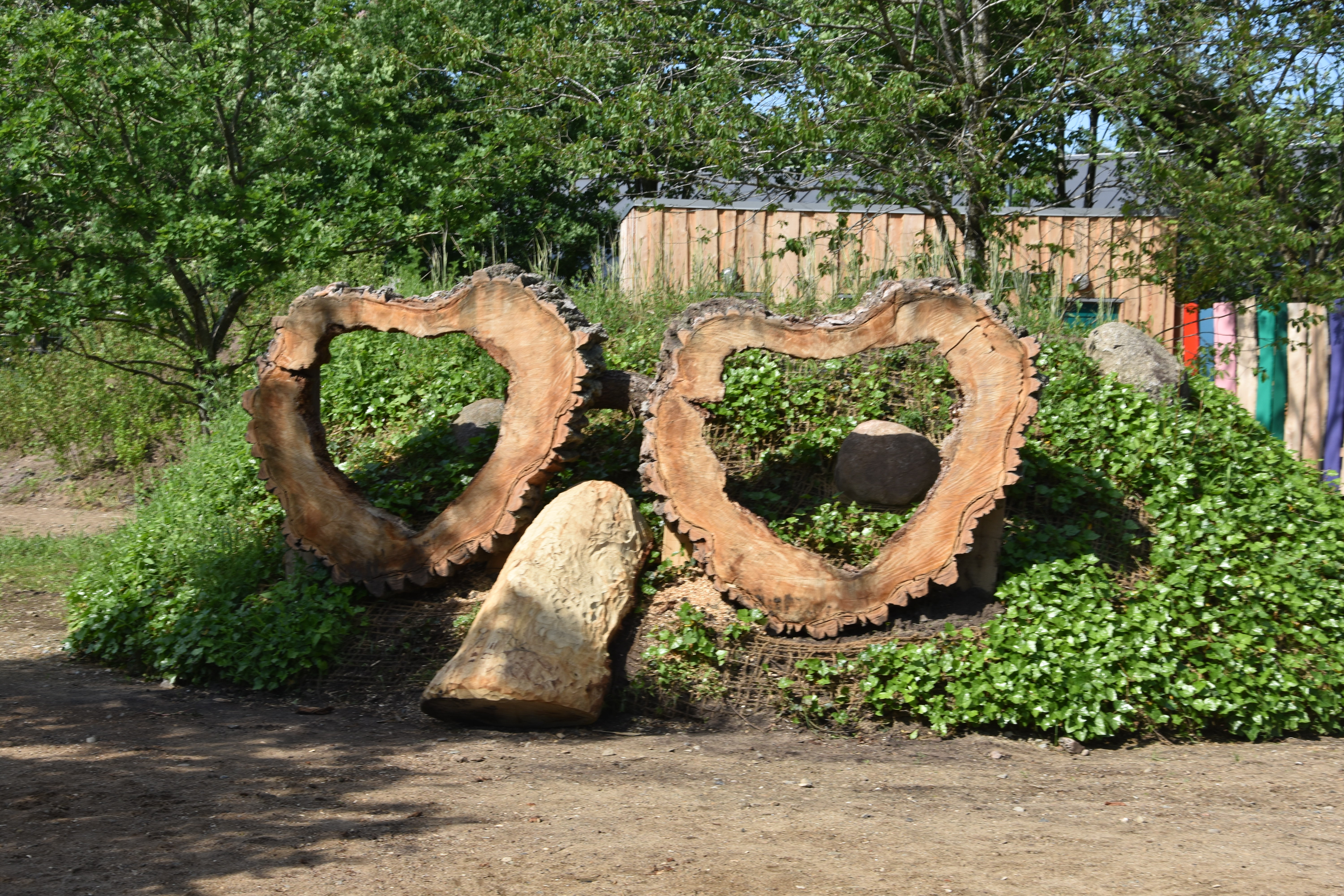 The map said that it was a labyrinth, so we stepped inside the head and following the body around to the end. The body created a pathway tunnel made from sticks. Some areas were very low, so it would be a challenge for tall people, like my husband. We liked that we were giving him a good workout for the day.