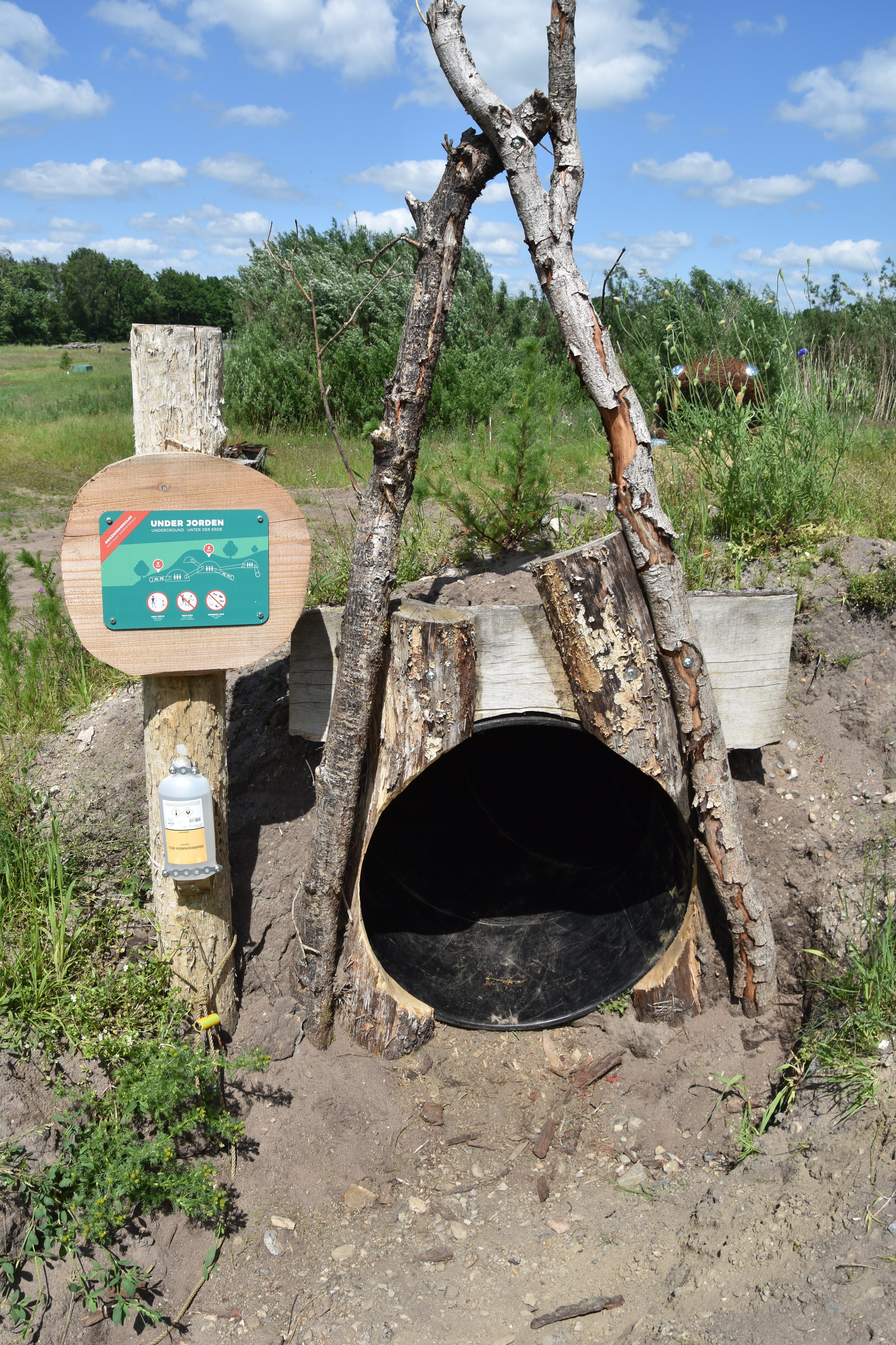 My oldest son started to get bored with his mom on this slide, so he convinced his brother to go into the Rævehulerne, which meant “fox holes”. This was another tunnel system that was underneath the large tunnel that the Skruptudsen was on. They really had a fun time, since there were multiple ways to get in and out of the tunnel.
