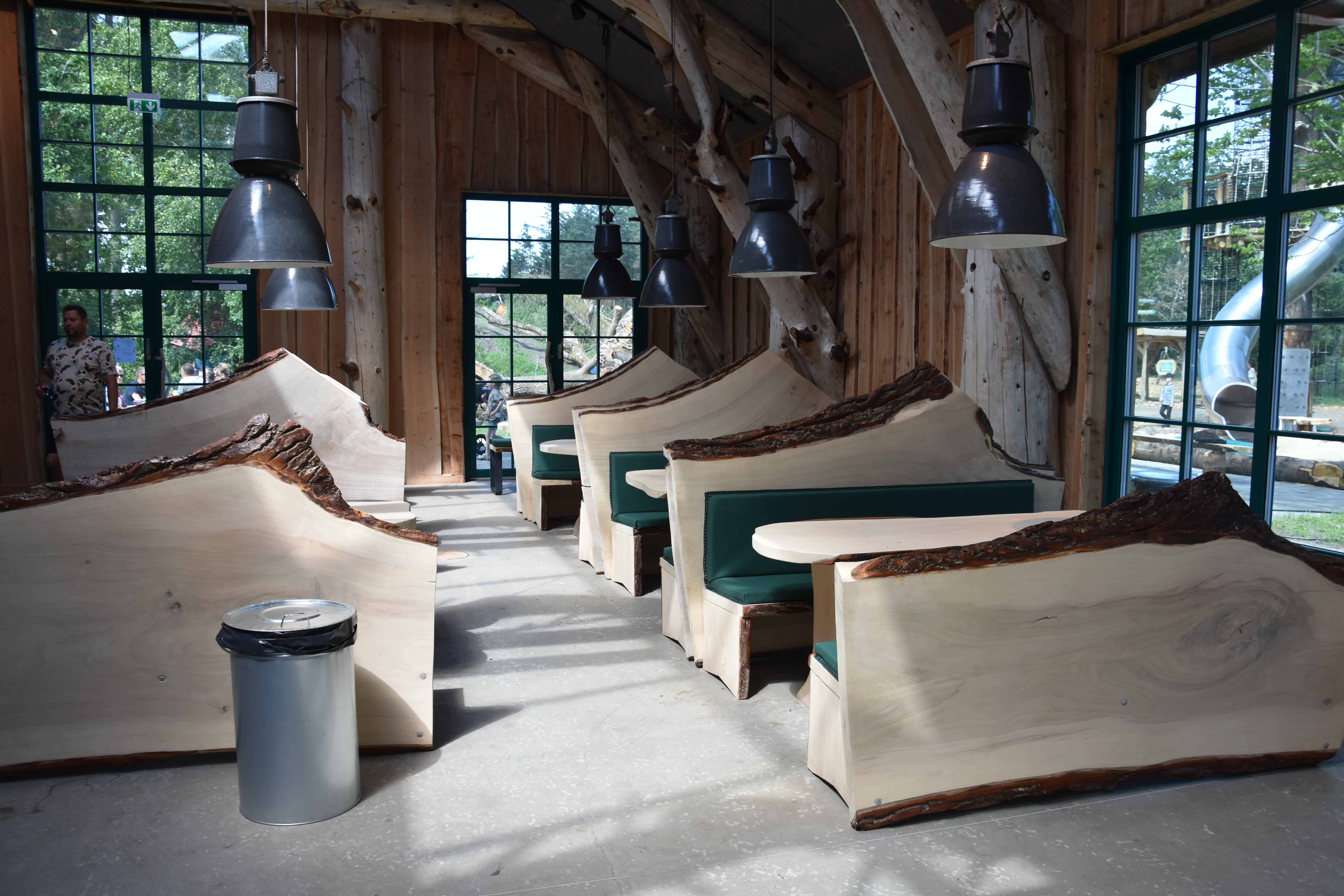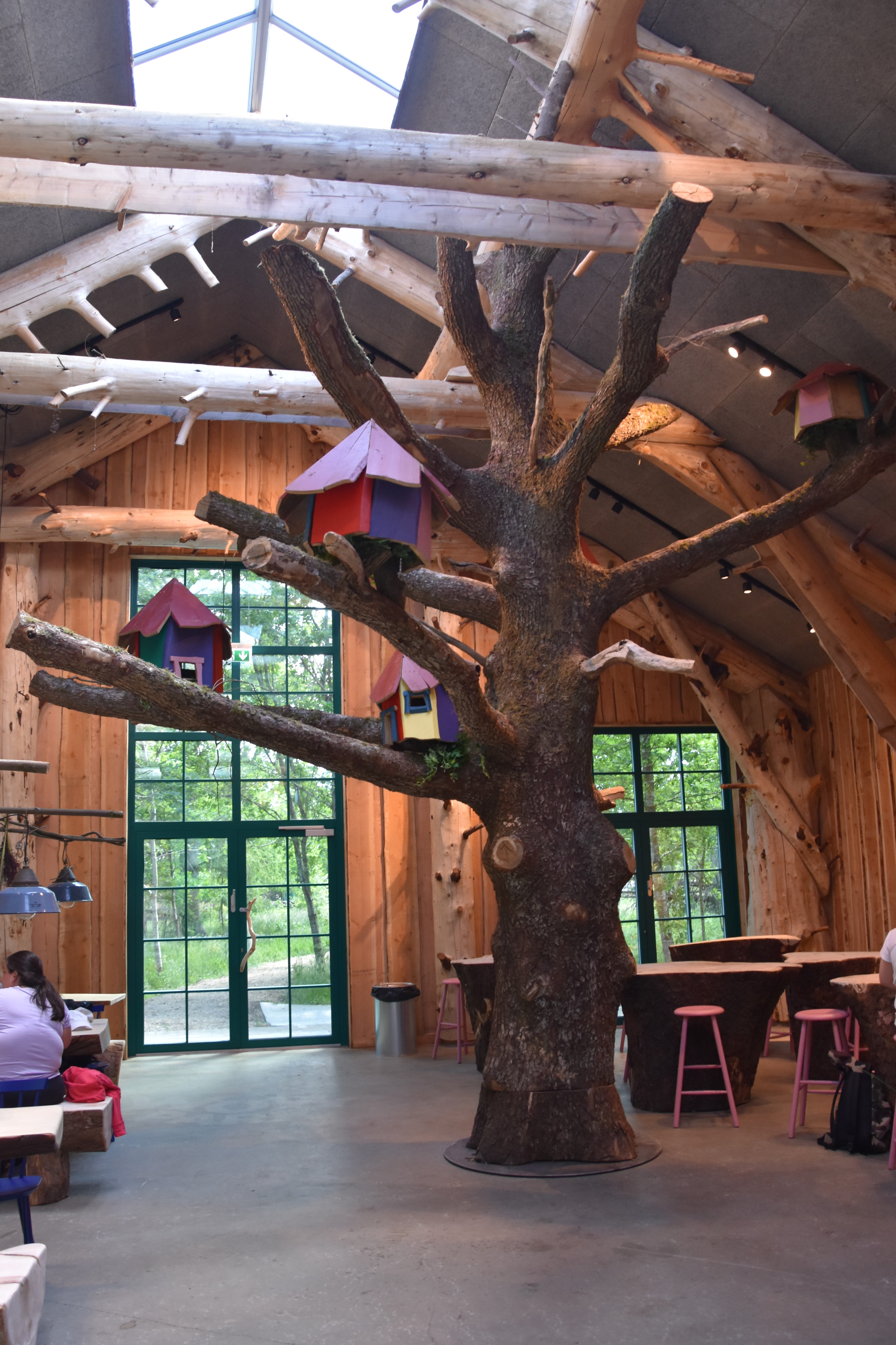 The Madladen food court at WOW PARK Billund had tables inside and outside. We chose to eat inside, since it offered such a great atmosphere. The added wooden features gave us the feeling that we were in a rustic lodge in the northern woods somewhere. I loved how the benches and tables seemed to be handcrafted out of large trees. It was beautiful.