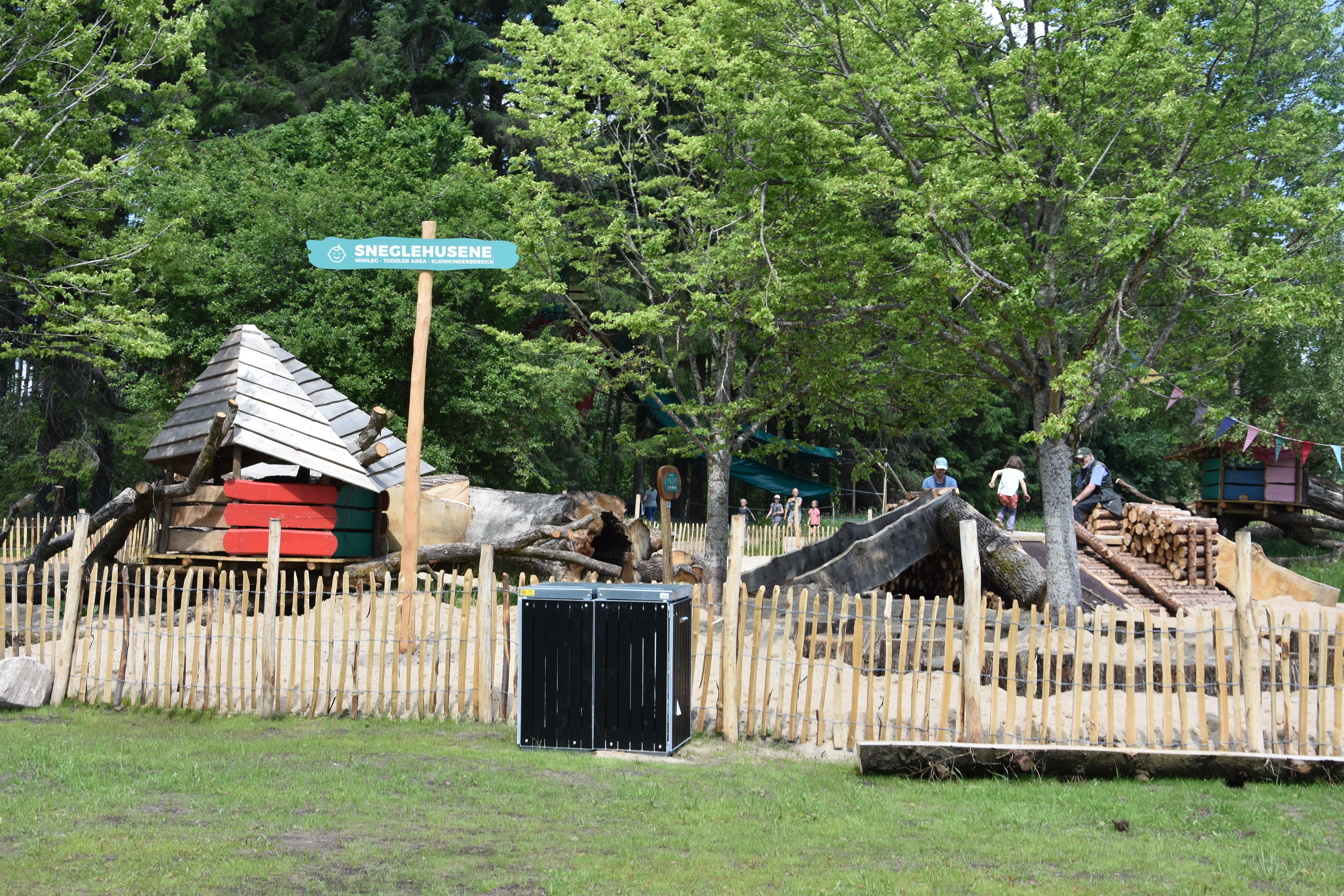 When we approached the “blå zone” or blue zone, we were actually surprised to see that it wasn’t set amongst the trees like the other areas. Instead, there were some places that were in a field and others that seemed to be on the top of hills. We started in the middle since it was a very hot day, and the middle attraction had water.