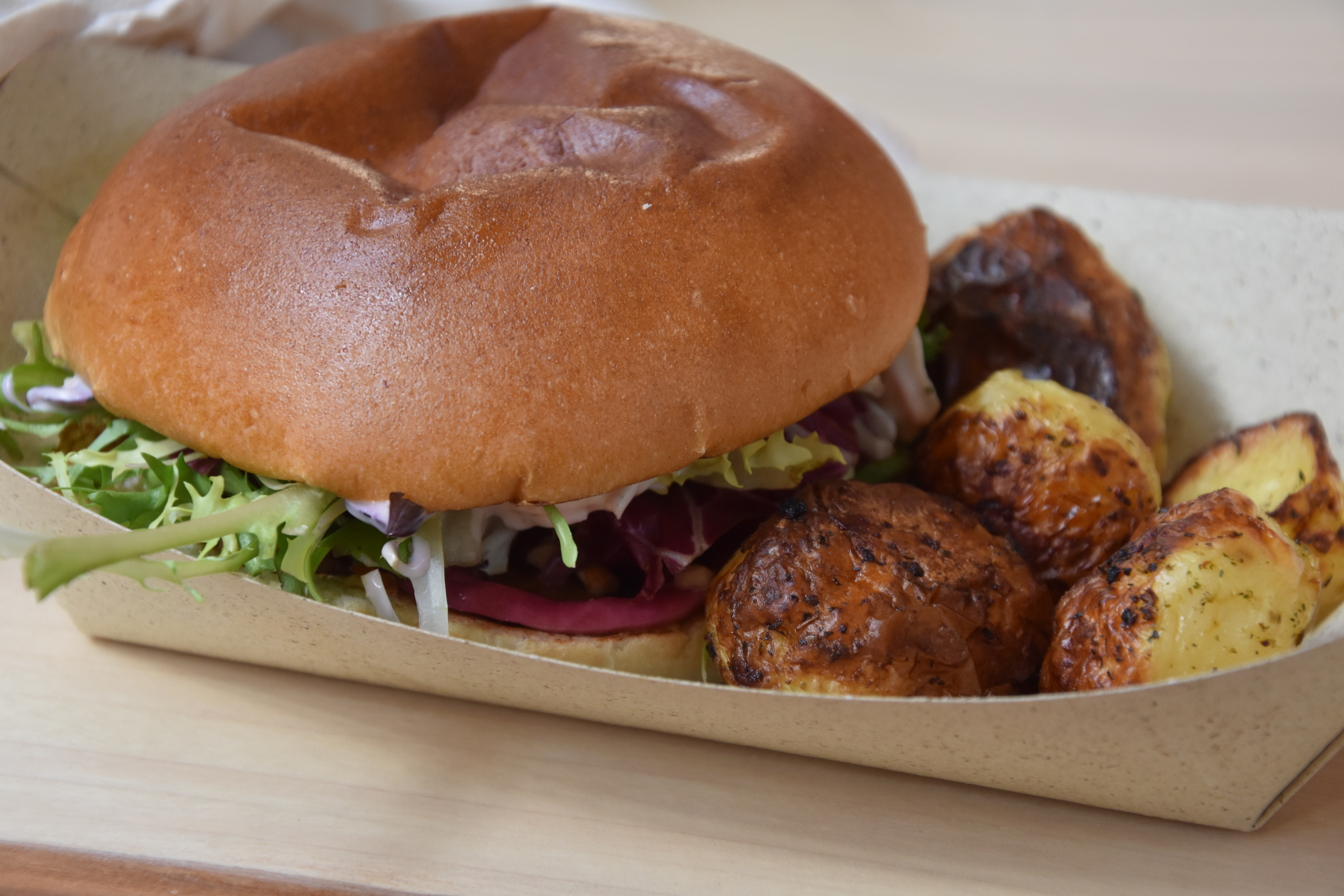 I ordered the Veggie Burger, which was a shredded, veggie, BBQ chicken. I hadn’t had a BBQ veggie meat sandwich since visiting the USA. It was so delicious that I could have eaten that meal for an entire week!